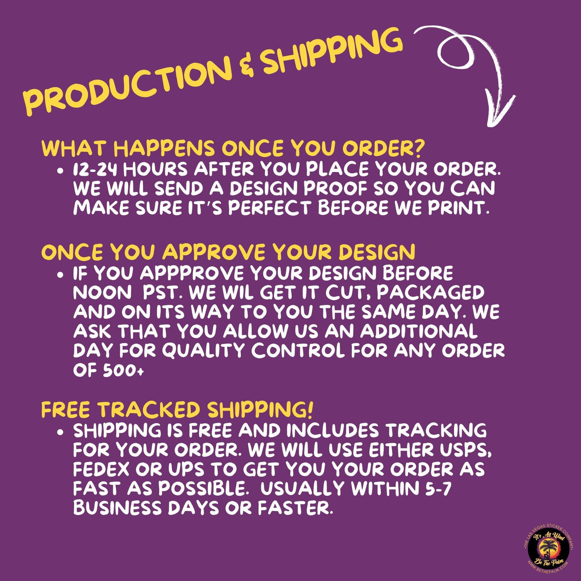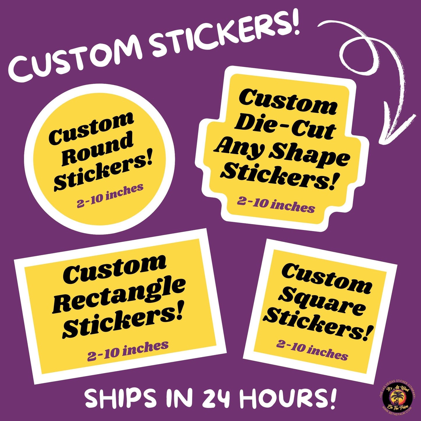 - We'll print, cut, and ship your stickers in 1 business day!